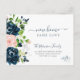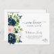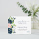 Elegante Blume neue Zuhause in derselben Liebe bewegende Ankündigung Postkarte mit einer schönen dunklen Mitternacht Marineblau und rot rosafarbenen Pinien botanischen Bouquet mit grünem Blattwerk und einem schicken trendigen Handschrift Kalligraphie-Skript.