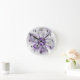 Flora Elegante Modernes Abstraktes Violett Fraktal Runde Wanduhr