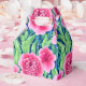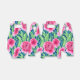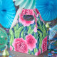 Blütenfarbene Aquarellmalerei mit rosa Blume und grünen Blätter auf blauem Hintergrund. Ein frisches Design und eine Anzeige zu Ihrer Blumensammlung.