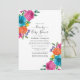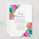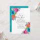 Wasserfarbene Blumenfiesta durch Brautdusche oder Babydusche Einladung mit handgeschriebener Typografie und türkisfarbenen Wasserfarbenwaschrückwärts.