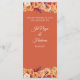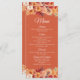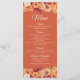 Blumenmenü im Herbst. Set vor einem rostorangefarbenen Hintergrund, bietet dieses Hochzeitsmenü farbenfrohe Blume in den vollkommenen Herbstfarben Orange, Rot, Gelb, Rot und Rosa mit Goldfolienakzenten. Das Hotel eignet sich hervorragend für klassische, zeitgenössische und uralte Hochzeitsstile im Herbst. Durchsuchen Sie die Auswahl der koordinierenden Einladungen, RSVP-Karten, Zeichen und mehr.