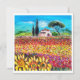 Toskana-Landschaft, lebhafte, ausdrucksvolle Schönheit der italienischen Landschaft und farbenfrohe Blume in hellgelben Orangen, Rosa, Fuchsien, lila, rot, grün, braun, schön Sommerwiesen, Blume, Zypressen und Olivenbäume, rustikales altes Bauernhaus unter dem blauen Himmel.Acrylmalerei auf Leinwand.