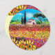 Toskana-Landschaft, lebhafte, ausdrucksvolle Schönheit der italienischen Landschaft und farbenfrohe Blume in hellgelben Orangen, Rosa, Fuchsien, lila, rot, grün, braun, schön Sommerwiesen, Blume, Zypressen und Olivenbäume, rustikales altes Bauernhaus unter dem blauen Himmel.Acrylmalerei auf Leinwand.