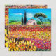 Toskana-Landschaft, lebhafte, ausdrucksvolle Schönheit der italienischen Landschaft und farbenfrohe Blume in hellgelben Orangen, Rosa, Fuchsien, lila, rot, grün, schwarz, schön Sommerwiesen, Zypressen und Olivenbäume, rustikales altes Bauernhaus unter dem blauen Himmel.Akrylmalerei auf Leinwand.