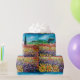 Toskana Landschaft, farbenfrohe, lebendige, ausdrucksvolle Schönheit der italienischen Landschaft und Felder in hellgelben Orange, Rosa, Fuchsia, lila, rot, grün, braun, gelb, wunderschöne Sommerflora, Wiesen, Blume, Zypressen und Olivenbäume, rustikales altes Bauernhaus unter dem blauen Himmel.Akryllische Gemälde auf der Leinwand.
