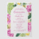Aquarellblütenpantoletten Tulips Zitronen Vellum Quinceañera Einladungen mit einem Blumenrahmen aus rosa Tulpen, rosafarbenen Pfannkuchen, Zitrusfrüchten mit Palmblättern und Grün mit goldfarbenen Schimmer Akzenten auf einem weißen Hintergrund. Innen ist Ihre individuelle Quinceañera Einladung Informationen. Personalisieren Sie den Text in den Textfeldern, indem Sie ihn bearbeiten. Für Sie entworfen von Evco Studio www.zazzle.com/store/evcostudio