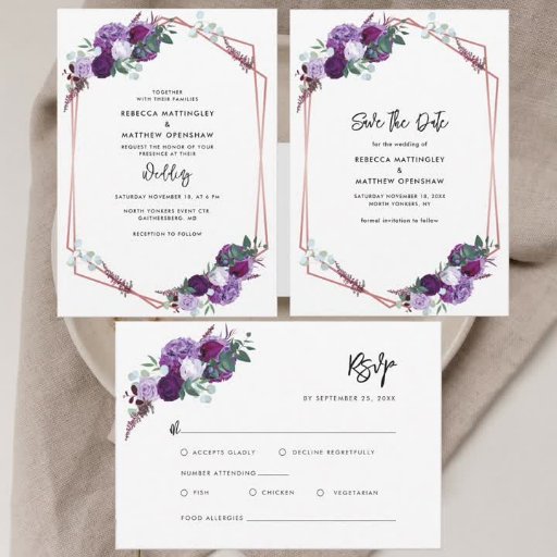 Purple Floral Rose Gold Geometric Wedding SuiteDesignt von S A Holmes