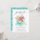 Schönes rosa, lila und weißes Blumenstrauß in einem blauen Teebecher-Set auf grauem Hintergrund für ein Geburtstags-Tee-Party. Dreh unsere Einladung nach hinten, um einen koordinierenden weißen Damast für eine besondere Touch zu sehen.