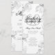 Elegantes "Geburtstagspartprogramm" mit floraler Anordnung in Silber mit individuellem Text.