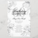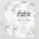 Elegantes "Geburtstagspartprogramm" mit floraler Anordnung in Silber mit individuellem Text.