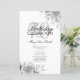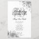 Elegantes "Geburtstagspartprogramm" mit floraler Anordnung in Silber mit individuellem Text.