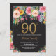 Floral 90. Geburtstag Einladung für Frauen. Aquarell Floral Blume. Schwarz-Gold-Glitzer. Rosa, gelb, orange, Lila Blume. Erwachsener Geburtstag.