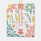 Beschreibung: Ein buntes und aufregendes Design mit dem Wort "AMEN" in einem glitzernden, dekorativen Schriftart, umgeben von lebhaften Blume, Blätter und einem niedlichen rosa Bogen. Die Kombination von Blumenelementen und Pastellfarben verleiht ihm eine fröhliche und von Glauben inspirierte Ästhetik.