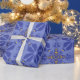 floral and geometric pattern in gold and blue geschenkpapier