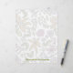 Hand drawn floral paper to use for scrapbooking, writing notes, or keeping a diary. Size 8.5 x 11 inches, with a text template at the bottom for a saying, or verse, or use the sample which is, "Flowers make the world a happier place." The whimsical design includes golden yellow, lavender, and purple flowers along with green leaves and vines. A pretty background for your writing with the design on both sides.