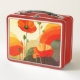 Brighten your day with this vibrant floral lunch box featuring bold poppy artwork in rich red, orange, and yellow tones.