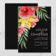 Floral Beach Black Tropical Hochzeit in Urlaubsort Einladung