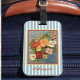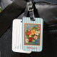 This lovely vintage look luggage tag features seed packet art of beautiful pink, gold, red, and white begonias from a 1902 Farquhar's Catalog. The artwork is bordered in deep red and gold, and it's set against a dusty teal blue striped background. The design is printed on one side, and there's a clear platic slot for sliding your id cad on the back. Seed packets and catalogs are a fascinating vignette of history, showing the art styles and seed types of various eras. This retro artwork is in the public domain.
