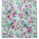 A charming shower curtain featuring colorful songbirds perched among blooming pink flowers and fresh green leaves on a soft mint background. A lovely choice for bird lovers, floral enthusiasts, and anyone who enjoys bright, artistic botanical patterns.
