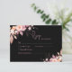 This RSVP card features soft blush and peach roses on a deep black background, matching the Floral Black & Blush Rose wedding suite. The floral artwork adds a warm and romantic touch, making it a beautiful part of your full invitation set.