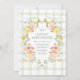 The invitation showcases a sage green gingham background, offering a fresh and inviting canvas that evokes the charm of a sun-dappled garden. Encircling your invitation details is a whimsical green frame design, adorned with an elegant bow. This playful frame adds a touch of sophistication and fun, beautifully highlighting the invitation's vibrant elements.