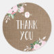 Floral Religious Event Dankeschön Sticker mit Imitate Burlap Hintergrund.