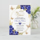 Floral Blue Gold Tiara Butterfly Mis Quinceañera Einladung