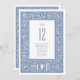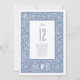 Fügen Sie Ihrer Hochzeitsdekoration eine Touch zeitloser Eleganz hinzu, mit dieser William Morris-inspiriert Tischnummer-Karte. Die Karte mit ihren aufwändigen Blumen- und Weinmustern in klassischem Blau und Weiß verleiht jedem Empfang ein raffiniertes, Vintages Ambiente. Die wunderschön detaillierten Rahmen bilden einen Rahmen für die Tischnummer und schaffen so einen atemberaubenden Brennpunkt für jeden Tisch. Diese Tischnummer-Karte, die sich perfekt für Vintage oder traditionelle Hochzeiten eignet, verbindet geschichtliche Kunst nahtlos mit moderner Funktionalität und macht sie zu einer unvergesslichen Ergänzung Ihrer Hochzeitsdekoration.