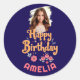 Blume mit Blumenmuster wünschen sich einen Geburtstagsaufkleber für Foto. Feiern Sie mit diesen charmanten personalisierten Aufklebern einen besonderen Geburtstag! Mit einem handgezeichnet Blumendesign, einem fröhlichen "Happy Birthday"-Text in spielerischer Orangenschrift und einem individuellen Foto und Namen. Ideal für Töchter, Nichten, Enkelinnen oder Freunde.