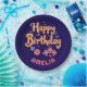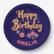 Blumenfreudige Blume zum Geburtstagsgeschenk, die Papier-Teller handhaben. Feiern Sie mit diesen charmanten personalisierten Tellern einen Geburtstag! Mit einem handgezeichnet Blumendesign, einem fröhlichen "Happy Birthday"-Text in spielerischer Orangenschrift und einem individuelle Name. Ideal für Töchter, Nichten, Enkelinnen oder Freunde.