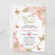 Floral Blush Pink Gold Tiara Butterfly Quinceañera Einladung