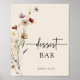 Dieses stilvolle und elegante Babyduschzeichen "Dessert Bar" | Das Poster zeigt wunderschöne handbemalte Aquarellfarben-Wildblumen, die als hübscher Kranz und elegante Kalligraphie-Schrift angeordnet sind. Entsprechende Artikel finden Sie in der Boho Wildblume Baby Shower Collection.