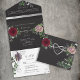 Tauchen Sie ein in den modernen Boho-Chic mit unserer eleganten Hochzeitsreise in einem Ambiente, das durch die reichen Bordeaux- und schwarzen Farbtöne mit stimmungsvollen Blumenmotiven besticht. Mit Imitaten verziert silberne Blumenspitze, strahlt es Eleganz mit einer Touch von Launen aus. Wenden Sie sich an die Rückseite für eine personalisierte Touch mit einem individuellen Bild des Ehepaares, neben den Einzelheiten der Hochzeit und den UAWG. Herzlich willkommen zu einem Fest der Liebe und des Stils mit dieser exquisiten Einladung, wo jedes Detail unvergessliche Momente und zeitlose Anziehungskraft verspricht.