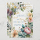 Elegante blühende Blume und Grün mit geometrisch goldenen Linien bilden diese schöne Hochzeitseinladung.
