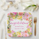 Mit diesem hübschen, blumengeschmückten Brautparty, das eine lebendige, rosafarbene, gelbe und pfirsichfarbene Grenze aufweist, feiern Sie stilvoll. Die elegante Schrift lautet "Herzlichen Glückwunsch" mit Platz für den Namen und das Hochzeitstag des Paares, was es perfekt für Brautpartys, Verlobungen oder Hochzeitsfeiern macht. Eine elegante und festliche Ergänzung zu Ihrem besonderen Event, die dem Tisch eine Touch Romantik verleiht!