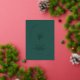 Illustration von Blumenstrauß im Inneren des Bogens über smaragdgrünen Hintergrund.