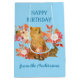 Auf diesem niedliche Geburtstag steht ein großer brauner Bär mit einem hübschen Strauß aus Korallen und weißen Blume. Hinter ihm steht ein Waldgarten mit Blume und ein kleines braunes Kaninchen. Weiß der Bär, dass er dort ist? Ihr eigener Text ist in zwei Feldern, knapp unterhalb der Bären- und Kaninchenbilder. Alles wird auf einem himmelblauen Hintergrund platziert, und beide Seiten der Tasche haben das gleiche Bild und Text.