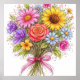 Artwork of a flower bouquet in a scribbled sketch art style. This cheerful illustration captures the simple happiness of a hand-picked wildflower bouquet. Designed to look like a fresh page from an artist's sketchbook, this piece features a vibrant bouquet rendered in a loose, "scribble" style. Energetic black ink lines define the shapes of sunflowers, daisies, and roses, while splashes of bright color fill them with life. The messy, frantic lines add movement and texture, making this a perfect inspirational piece. This graphic floral design stands out with its bold, illustrative look. The contrast between the dark, scratchy outlines and the saturated colors gives it a trendy, modern edge that looks great in any home decor.