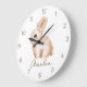 Floral Bunny Personalized Nursery Wall Clock Custo Große Wanduhr