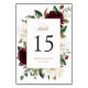 Floral Burgund Weißer Magnolia Tischnummer