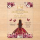 Feiern Sie Ihren besonderen Tag mit der Einladung der Prinzessin Quinceañera aus Burgundy Butterfly. Dieses elegante Design besticht durch seine bordeauxfarbenen Farbtöne mit zarten Blumen- und Schmetterlingsakzenten, die Schönheit und Transformation symbolisieren. Die Einladung ist perfekt für eine Quinceañera zum Thema Prinzessin geeignet und vermittelt das Wesen der Gnade und der Eleganz. Die faszinierenden Details und die lebhaften Farben Set für ein unvergessliches Fest und laden Ihre Gäste ein, an diesem einmaligen Event teilzunehmen. Lassen Sie sich verzaubern von dieser atemberaubenden, zeitlosen Einladung, die Ihren Stil und Ihren Charme widerspiegelt.