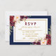 Aquarellfarbene Blütenburgundy Marsala Gold and Blue Wedding RSVP Card - White Back - Meetingauswahl
