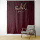 Einfache monogramm, blumenburgundisch goldfarbene Hochzeitsempfang Hochzeitsstand Foto Kulisse. Hübsch minimalistisches Chic-Blumenmuster. Elegant, elegant, modern, trendig, stilvoll, wunderschön und elegant metallisch. Name und Datum sind oben. Um Ihr Skript anzupassen, klicken Sie auf Design bearbeiten. Bildrecht Marg Seregelyi Fotografie.