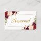 Floral Burgundy Gold Wedding vorbehalten Platzkarte