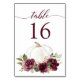 Blumenburgund Pumpkin Fall Rustikale Tischnummern. Diese Blumenkarte ist ideal für Hochzeiten im Herbst, Babyduschen, Brautpartys und vieles mehr.