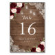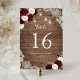 Floral Burgundy Rustic Wood Lace String Lights Tischnummer