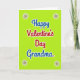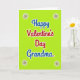 This Valentine's Day card shows the words “Happy Valentine’s Day Grandma” centered on a bright lime green background. “Happy Valentine’s Day” is written in rounded red letters with a white outline, making it stand out right away. Just below, “Grandma” appears in deep royal blue with the same white outline, so the message feels clear and easy to read. In each corner, there’s a simple starburst shape with a small orange-red dot in the middle and thin dark lines reaching outward. The corner details are small but add a sweet frame around the message without taking attention away from it. The strong mix of green, red, and blue gives the card an upbeat, affectionate feel that suits a grandma you love. It’s a meaningful way to say you’re thinking of her and that she matters to you 🥰❤️. Hope it helps you share your Valentine’s Day sentiments.