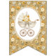 Celebrate your baby shower with this warm neutral “Welcome Baby Boy” bunting banner featuring a charming vintage carriage and a soft gold floral pattern. Each swallowtail flag displays elegant lettering surrounded by delicate florals for a timeless, premium look.
