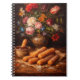 The strong contrast between the dark backdrop and the colorful florals creates a refined, fine art feel, while the warm tones and soft textures of the churros add depth and comfort to the composition. Inspired by traditional still life painting, this piece offers a unique and elevated take on everyday food and floral subjects.
