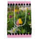 Das Bild auf diesem Produkt zeigt einen Garten mit Frühlingsblumen; die bunten Blüten in hübschen Farbtönen Gelb, Weiß, Rosa, lila, Lavendel und Fuchsia, mit einem lustigen Polka Dot Trim.